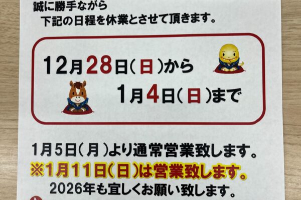 明石吉田屋産業株式会社 車検センター 「年末年始休業日のお知らせ」